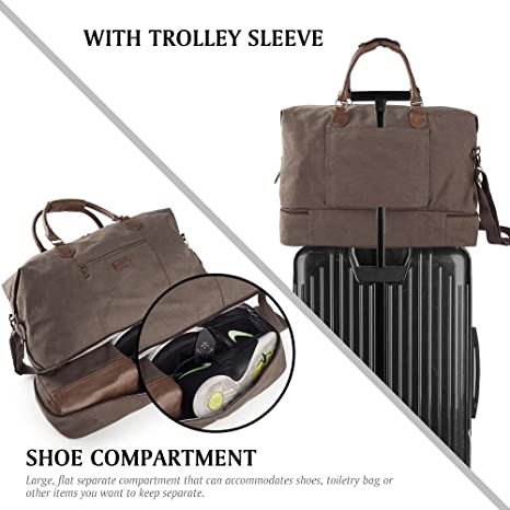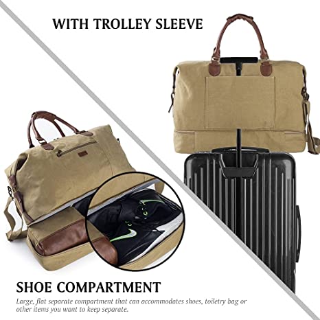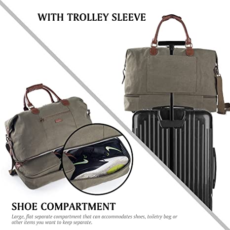 Canvas Travel Luggage Men's Weekender Duffle Bag with Shoe compartment and Toiletry Bag