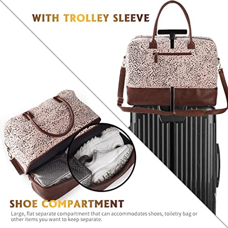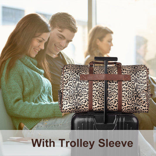 Viva Terry Canvas Weekender Bag, Overnight Travel Carry On Duffel Tote with Shoe Pouch (Cheetah Spot)