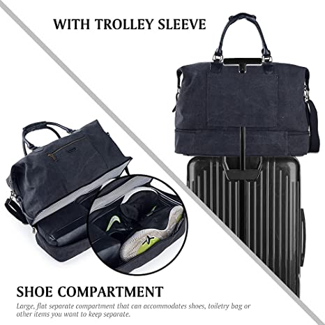 Canvas Travel Luggage Men's Weekender Duffle Bag with Shoe compartment and Toiletry Bag (Black)